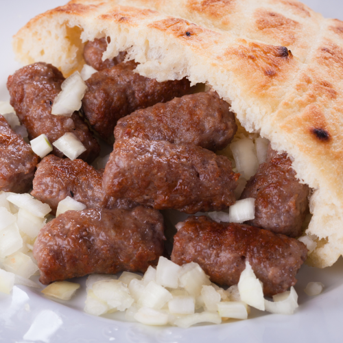 Im gesamten westlichen Balkan ist das Prinzip dasselbe: gewürztes Hackfleisch, geformt zu kleinen Röllchen, über starker Hitze gegrillt und mit Brot, Zwiebeln und oft Ajvar oder Kajmak serviert.